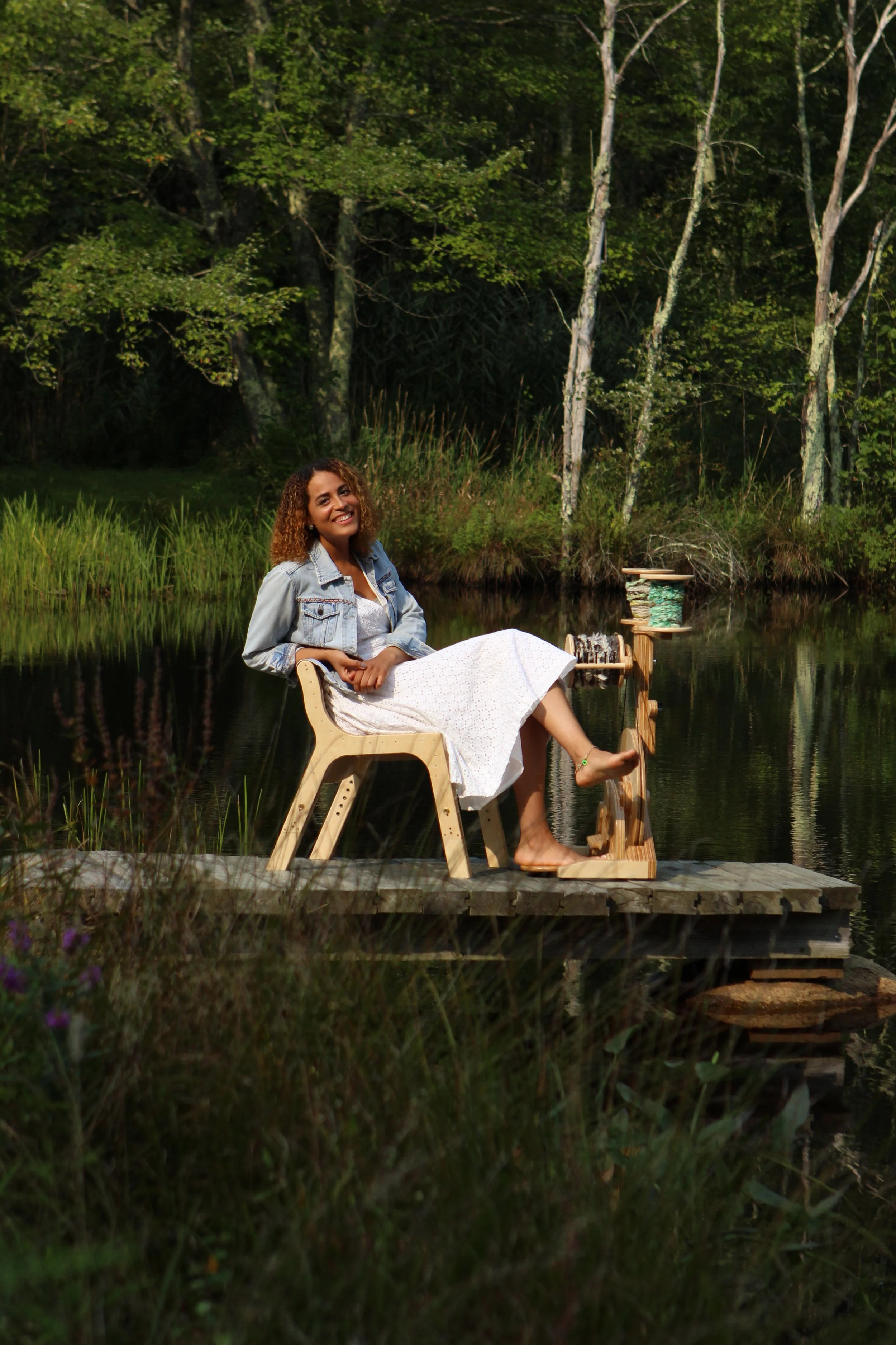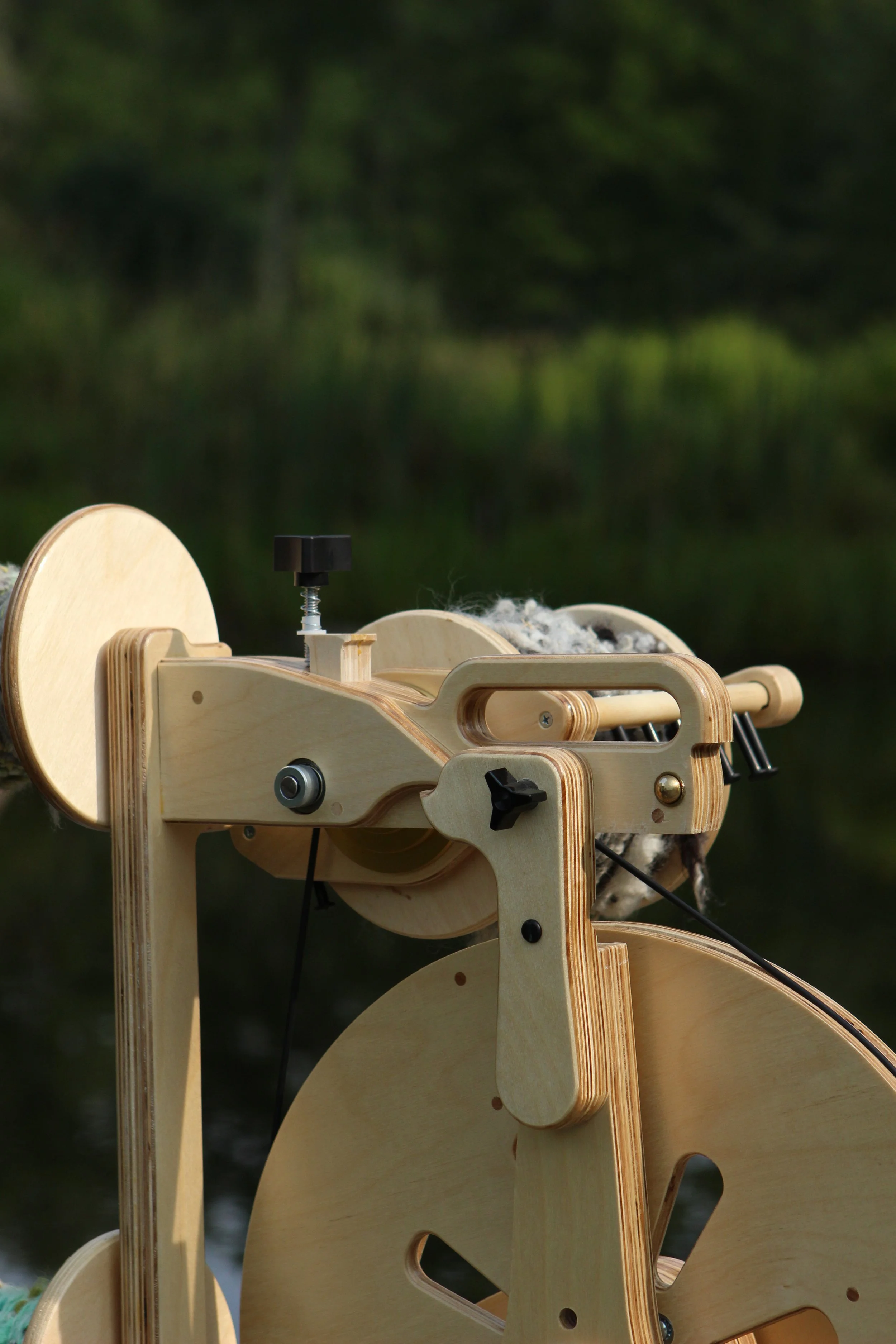 Crafted from durable Baltic birch, the Bullfrog handles a variety of fibers and includes a 16-ounce flyer that can also use 8-ounce bobbins for added versatility. Its deeper, powerful treadle motion is especially loved by art yarn spinners, making it a reliable choice at home or on the road.