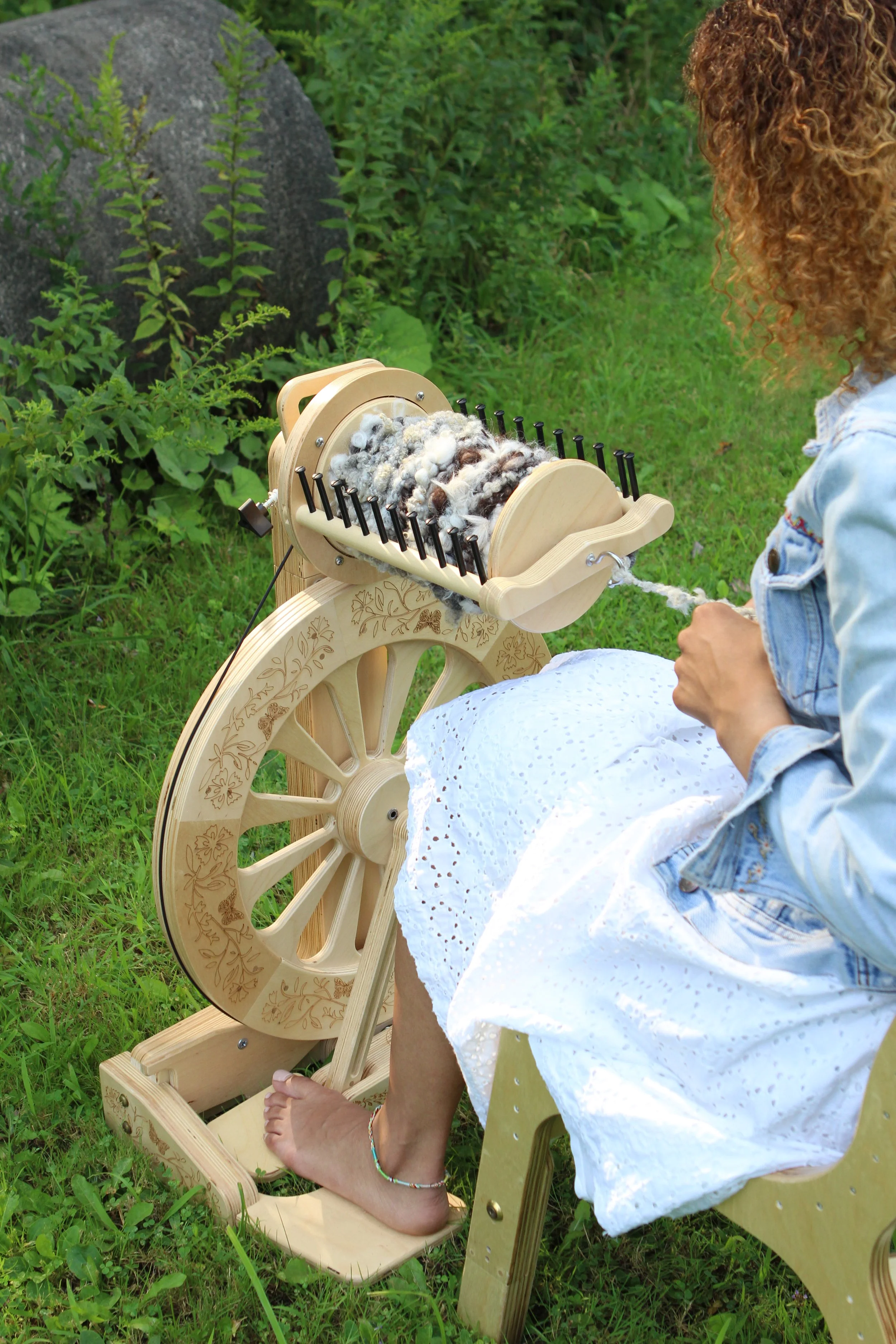 The SpinOlution Studio Chair is designed at the ideal height with an ergonomic profile to support comfortable, efficient spinning on SpinOlution wheels as well as other fiber studio tools. Built for long sessions of creativity, it promotes proper posture and smooth treadling while also working beautifully with looms and other fiber arts equipment, making it a versatile, essential piece for any well-designed studio.